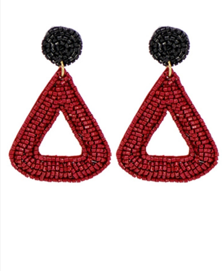 Black + Burgandy Triangle Hoop | Game Day Earring