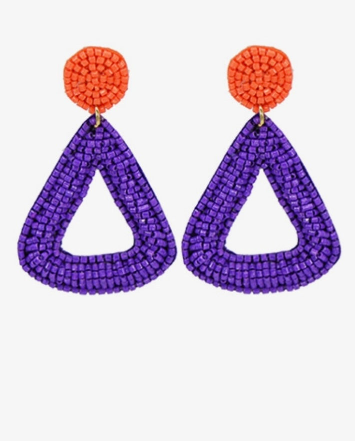 Purple/ Orange Beaded Paw Earrings | Game Day Earrings