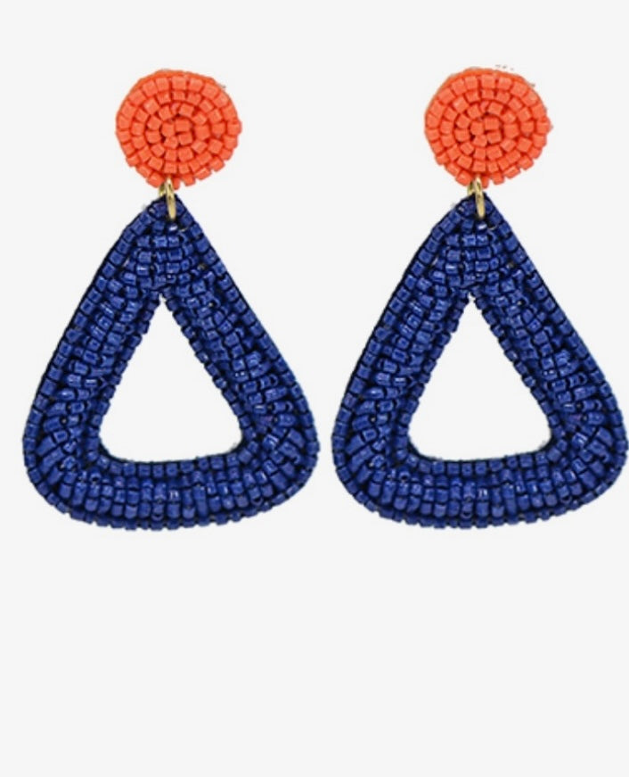 Orange + Navy Raffia Closed Hoop Earring| Game Day Earrings