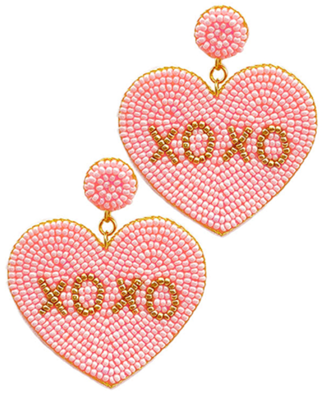 Blush Beaded XO Heart Earrings | Valentine's Earrings