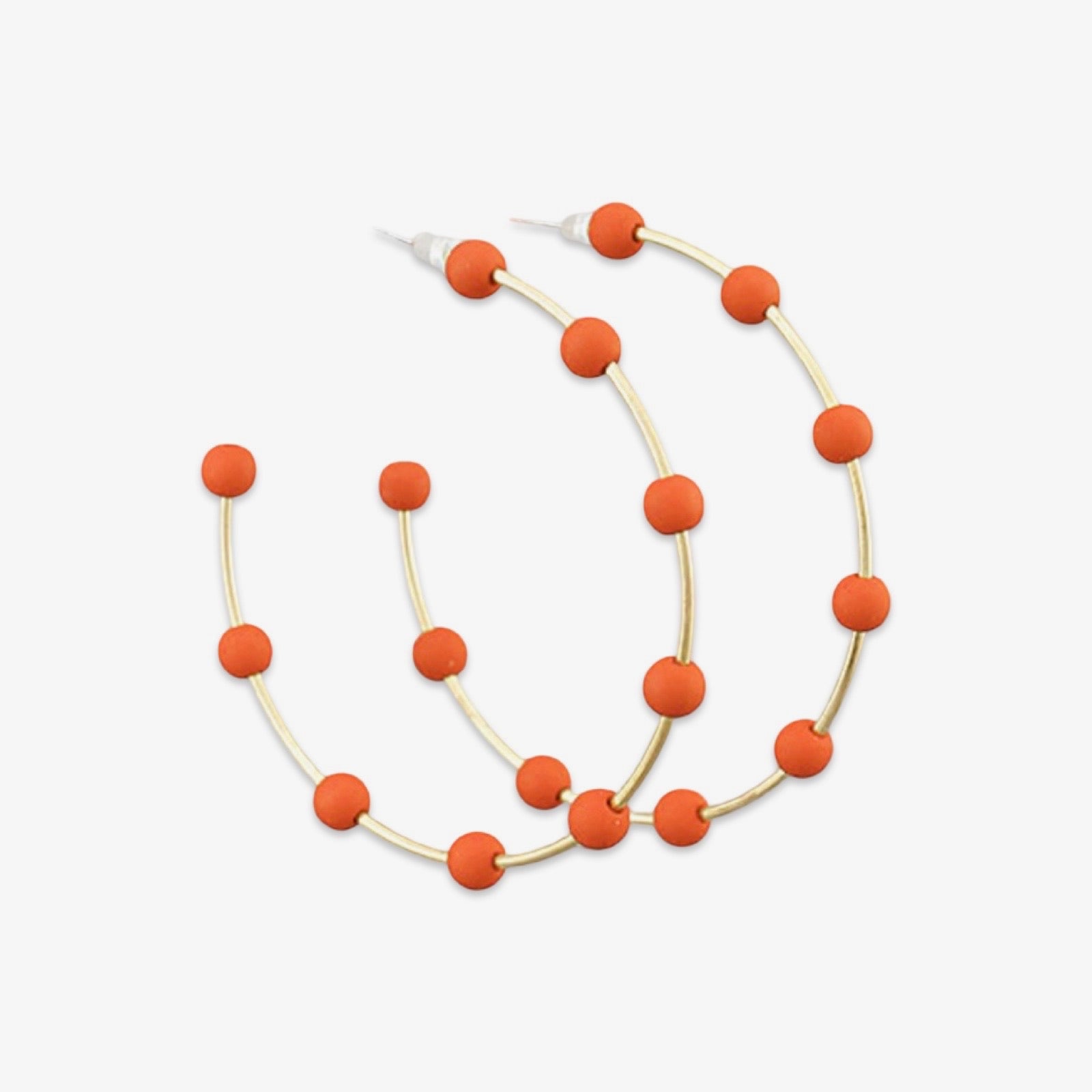 Orange & Gold Bead Hoop Earrings | Polymer Clay Bead Hoop