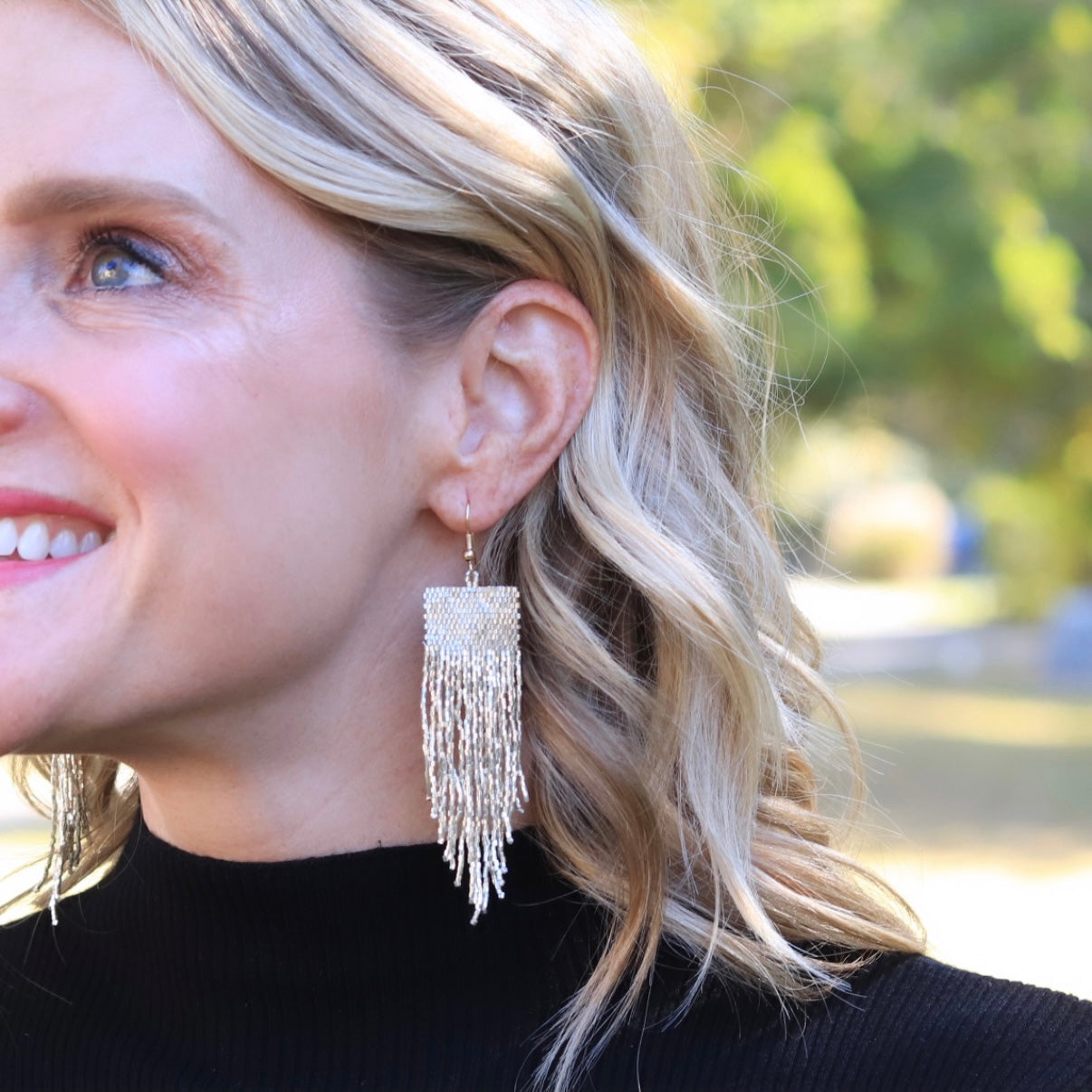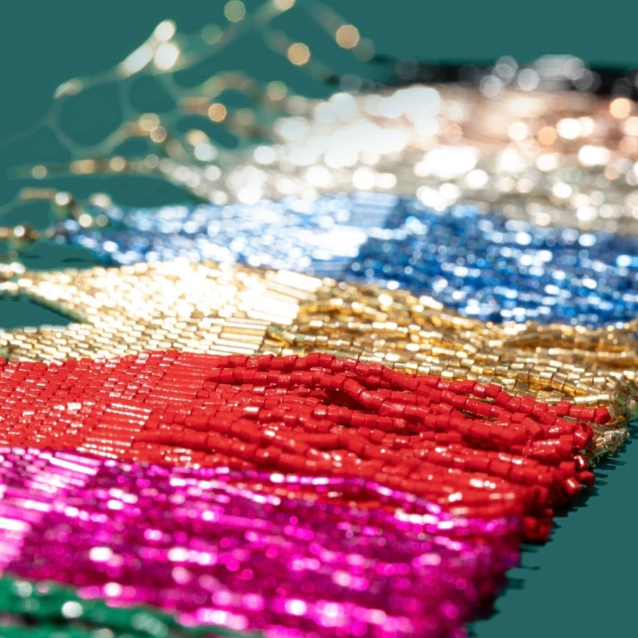 Custom Metallic Lux Beaded Square Fringe Earrings | Fringe Dangle